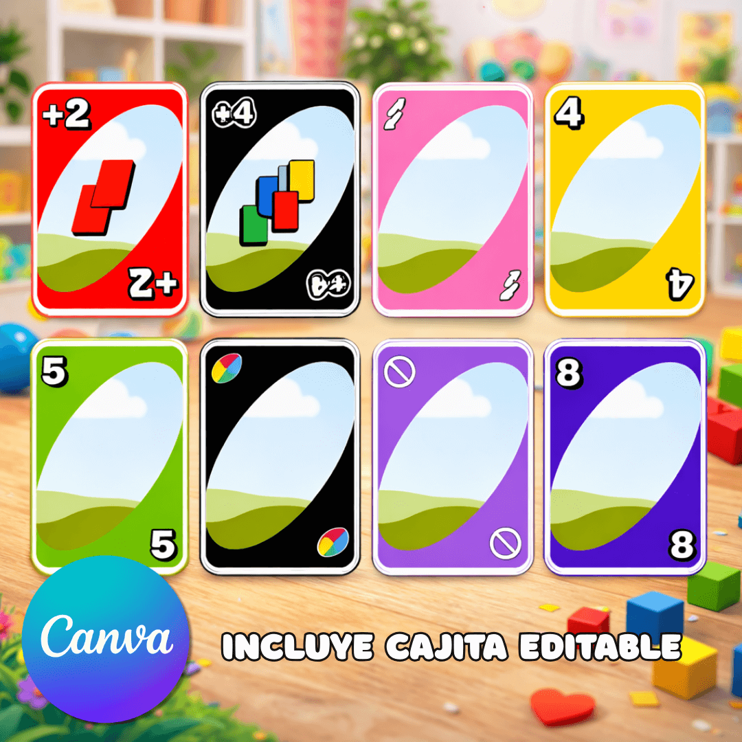 Dale un toque único y creativo a tus reuniones y celebraciones con este divertido UNO totalmente editable.